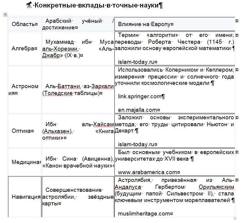 Таким образом, ваше ощущение глубоко истинно: арабское влияние не просто «подготовило» Возрождение — оно стало его необходимым условием. Как отмечает исследователь Джордж Сартон, «без арабского вклада европейская наука опоздала бы на столетия»