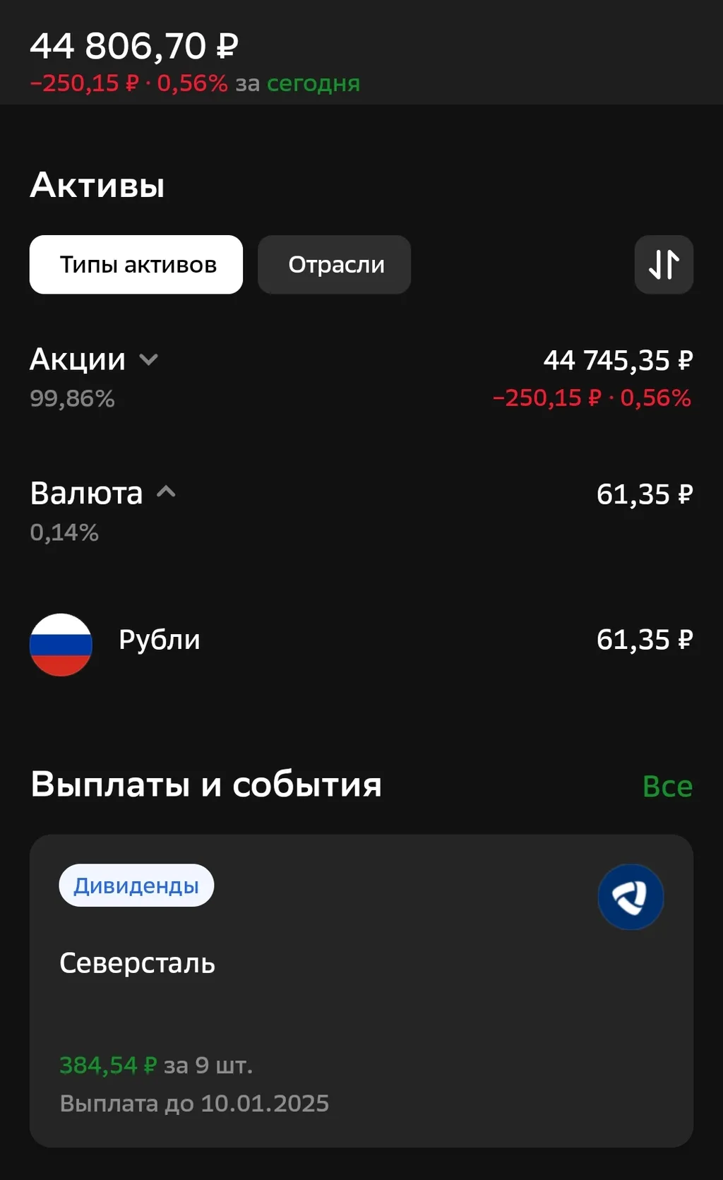 Как я и говорил, пошла коррекция и мой портфель потерял ещё пол процента.