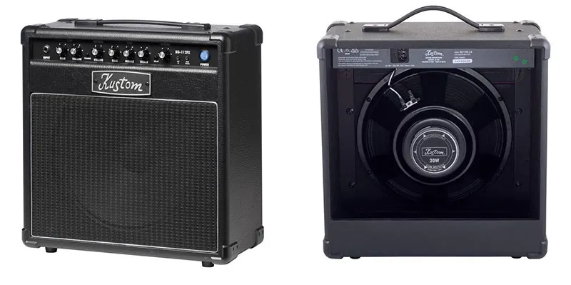 Американский брэнд Kustom появился на музыкальной сцене в середине шестидесятых. Это были транзисторные усилители и огромные кабинеты Бада Росса, принятые на ура музыкантами ритм-энд-блюз, мотаун, сёрф и рокабилли за их громкое и чистое звучание. Усилители Kustom также выделялись своим дизайном, в частности «дутой» обивкой из цветной искусственной кожи, как интерьер американских скоростных автомобилей. Однако современные Kustom — это совершенно другая история. В начале семидесятых Бад продал свою компанию и открыл новую Ross, известную культовыми гитарными примочками, а потом и вовсе завязал с музыкой, подавшись в авионику и производство полицейских радаров. В середине девяностых, очередные владелицы брэнднейма возродили производство гитарных усилителей, и добились успеха именно в области продукции для начинающих гитаристов, хотя под маркой Kustom в первой декаде нулевых производились и серьёзные крутые ламповые усилители, когда там работал уже упомянутый выше Джеймс Браун. Именно с его подачи Kustom доказали что домашний комбик не обязательно должен быть маленьким, и выпустили недорогой транзисторный комбик с динамиком полноценного 12-дюймового размера. 12» динамик в таком комбике хорош даже не столько звуком, сколько тем, что даёт почувствовать отдачу усилителя, и научить начинающего гитариста взаимодействию с настоящим гитарным комбиком.