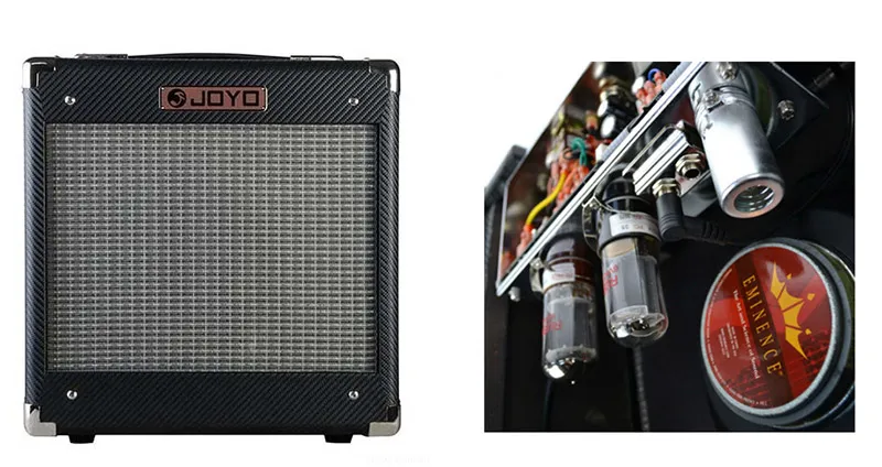 JTA-05 Sweet Baby — идеальный вариант для домашних занятий. Он позволяет отточить один из самых важных навыков — контроль динамики кончиками пальцев, что невозможно отработать ни на одном транзисторном, и уж тем более на цифровом комбике или процессоре. Ведь одно из самых неприятных разочарований гитариста, когда добившись, на первый взгляд, значительных успехов, играя через цифру, он наконец попадает в дорогую студию с настоящим винтажным аппаратом, и не в состоянии сыграть ни одной годной ноты из за отсутствия контроля динамики. Функционал Joyo JTA-05 Sweet Baby прост и минималистичен, всего одна ручка громкости и всё, зато комбик дружит с гитарными педалями, и прекрасно разгоняется грелками. Кроме того, ламповый выпрямитель — отличный опыт почуствовать поведение винтажных усилителей и тот самый Sag. Мощность усилителя — 5Вт. Комбик Sweet Baby оборудован фирменным гитарным динамиком Eminence EGTR-S108, восьмидюймового размера