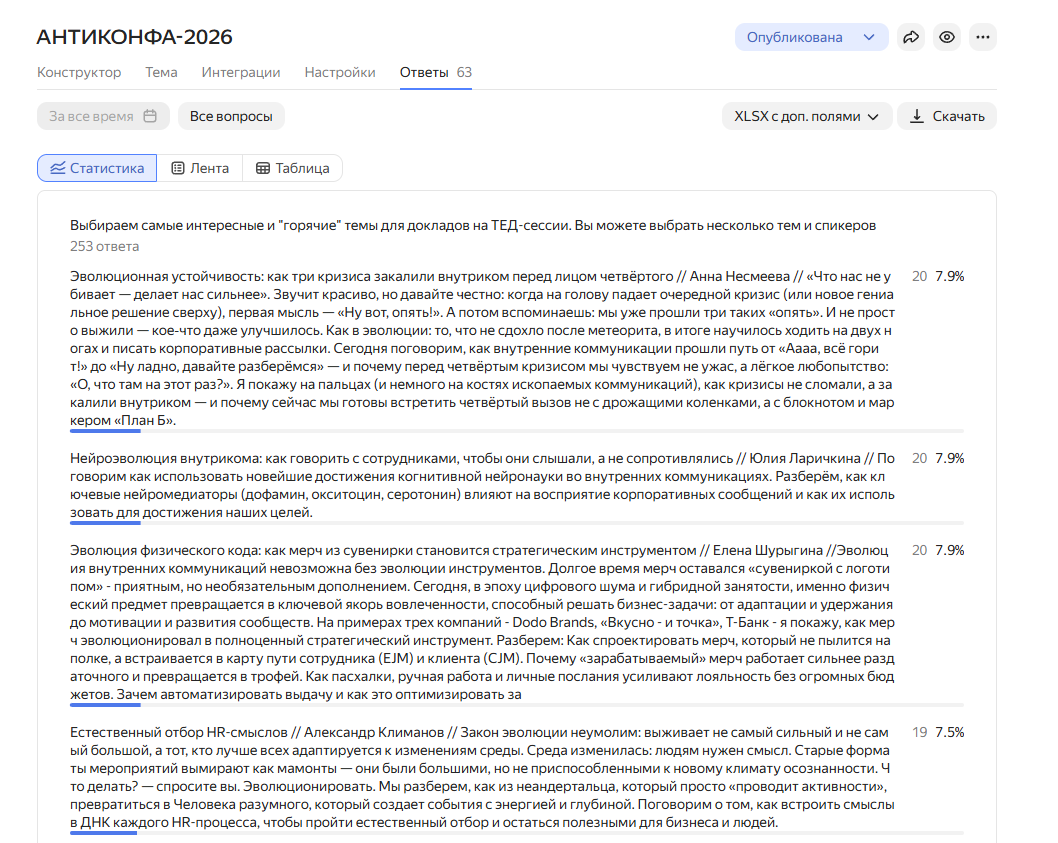 Пруффы в подтверждение. В скринах отмечены двойные заявки, которые сняты спикерами после голосования (один спикер = одно выступление)