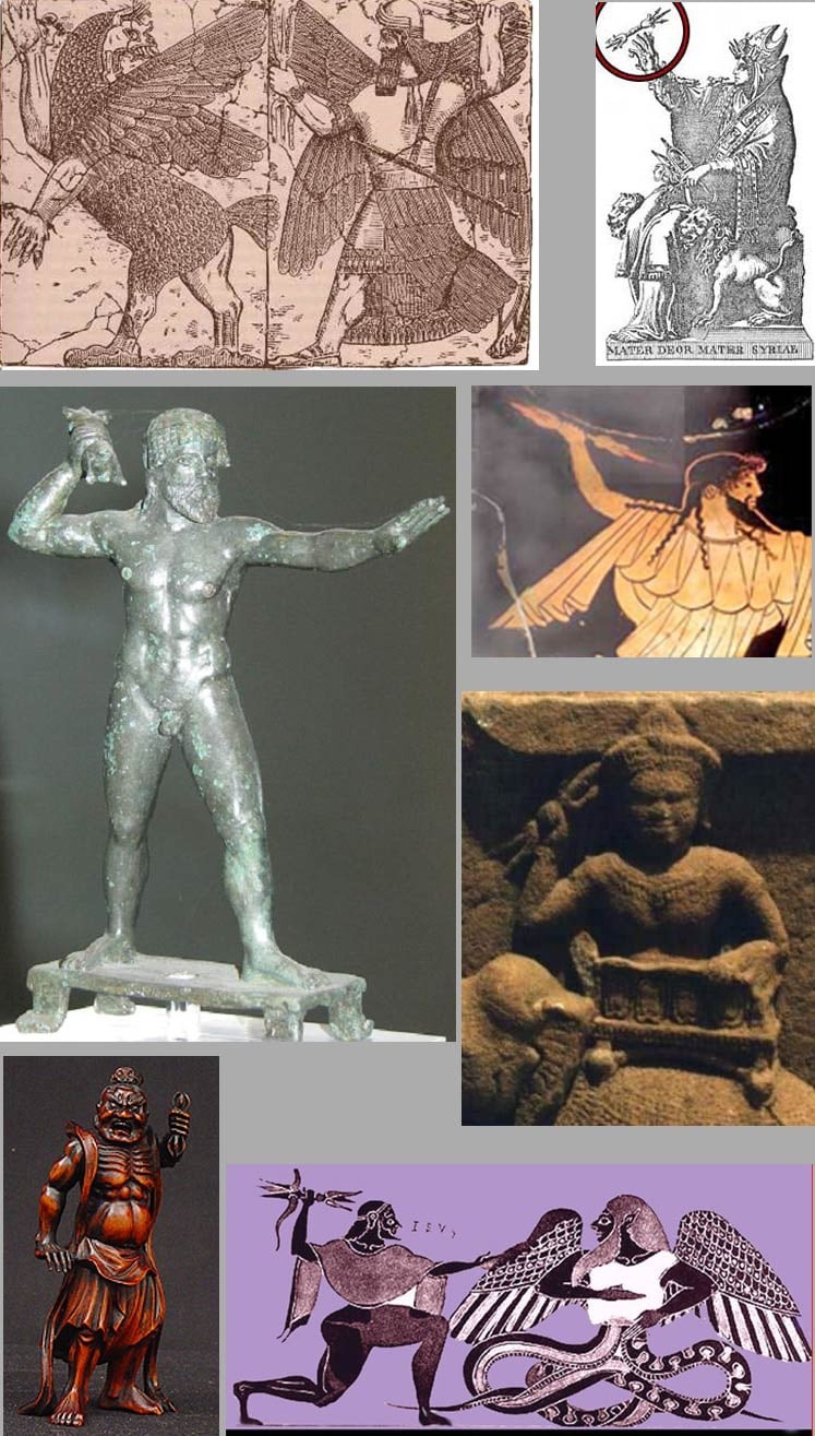 Всё они часто изображаются держащими в руке пучок стрел или дротиков, что вновь отсылает нас к Зевсу и ваджре.