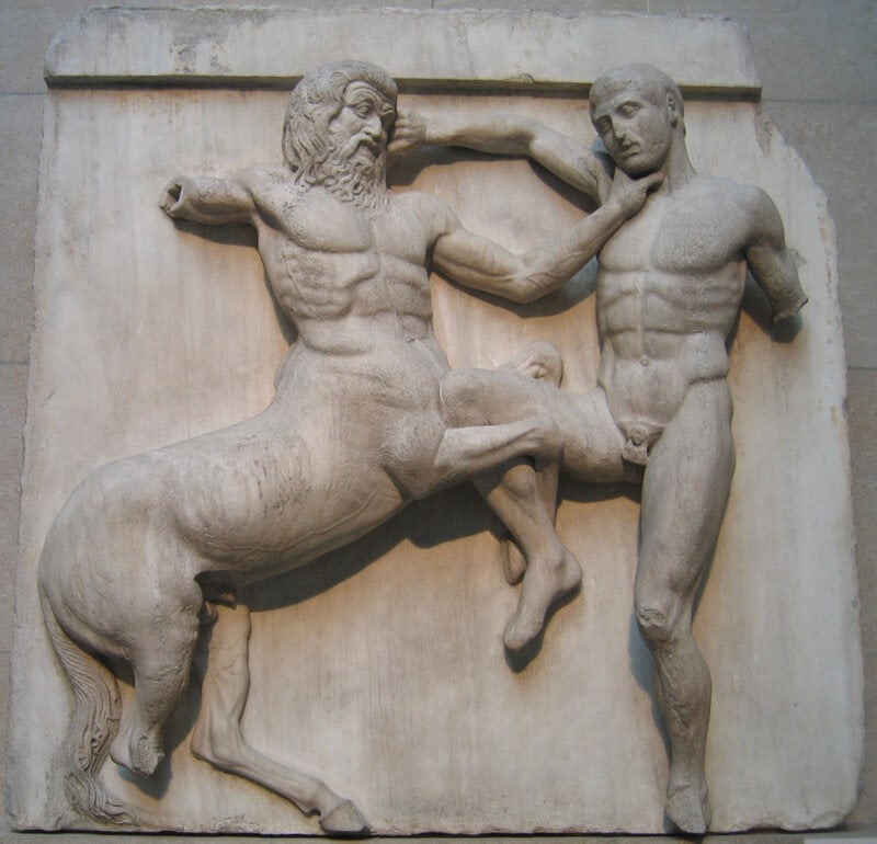 В мифах о лапифах есть подобный мотив. Кентавры, приглашенные на свадьбу лапифов, опьянев, не устояли перед соблазном и похитили женщин лапифов, превратив, в итоге, праздник в бойню.
