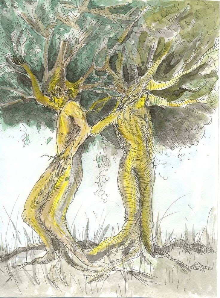 Елена Петровна Блаватская во втором томе «Тайной Доктрины» говорит, что «деревьями» в оккультных источниках называли древних людей «левой руки», то есть, людей «выбравших тьму». Сложно сказать, был ли у них выбор. Ведь для такого выбора нужно иметь разум, которого у первого человечества на тот момент ещё не было. По причине ошибки, совершённой на более высоком уровне, они попали под воздействие мощной внешней негативной силы. В результате они изменились настолько, что стали «ненавистны богам».