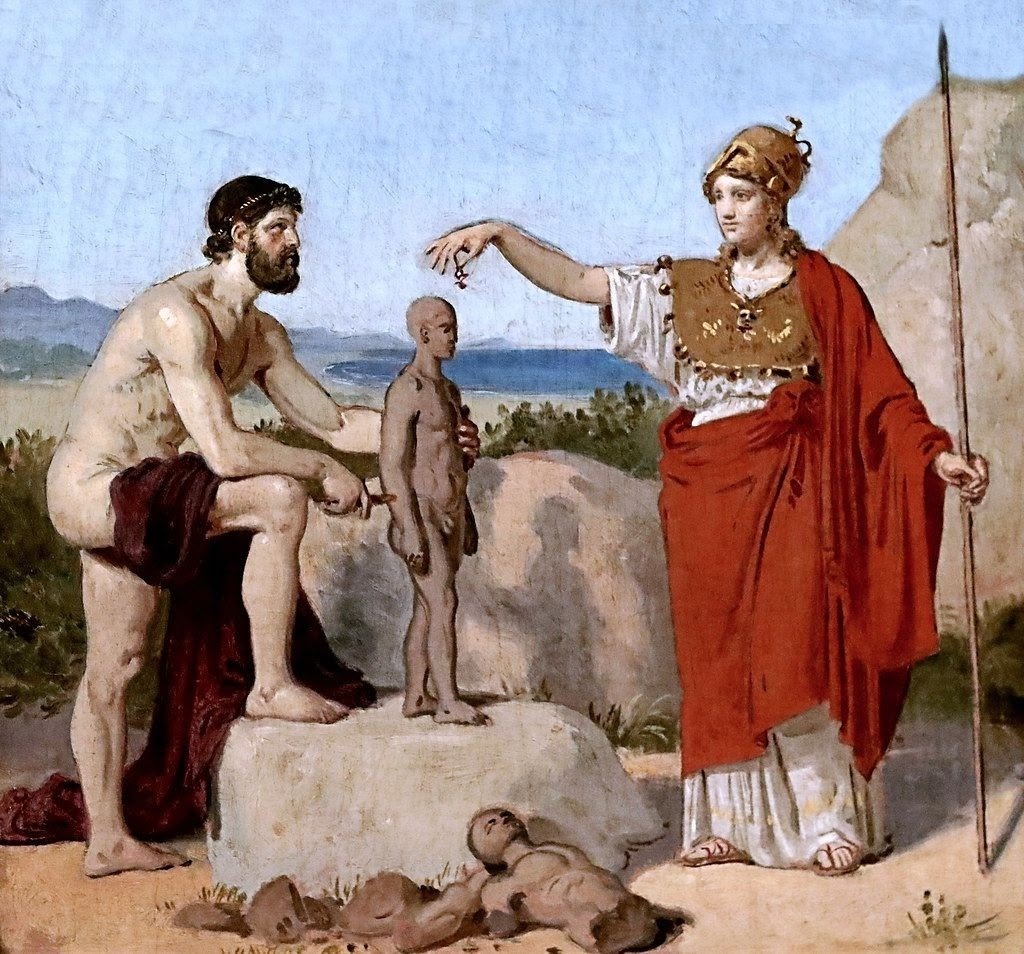 Прометей, что лепит человека из «земли и воды».