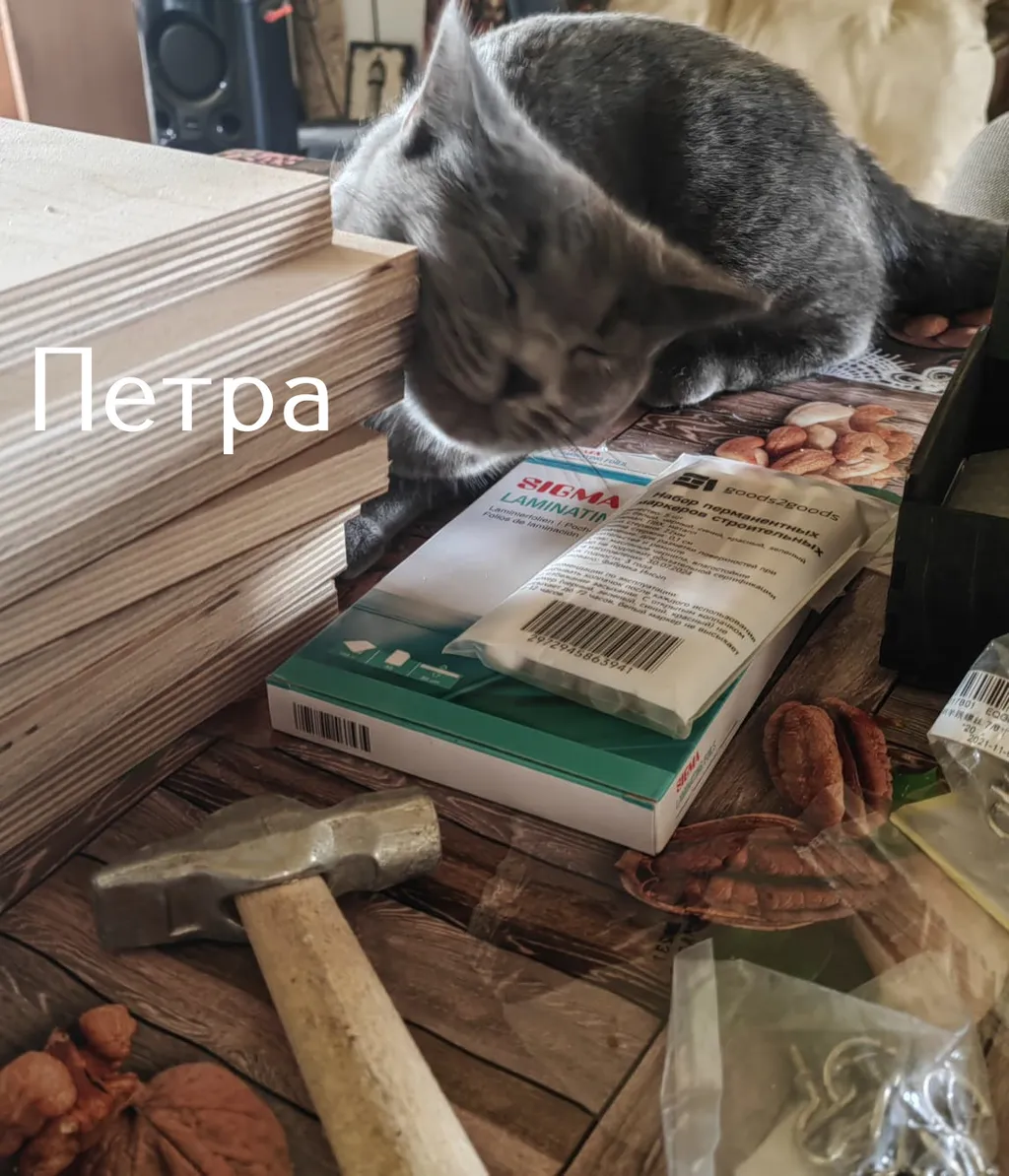 Сами таблички сфотографировать я забыл, но обязательно сделаю это к следующему вторнику. Пока же есть только фото процесса изготовления. И то там пришлось прервать процесс потому что Петра пришла поласкаться))