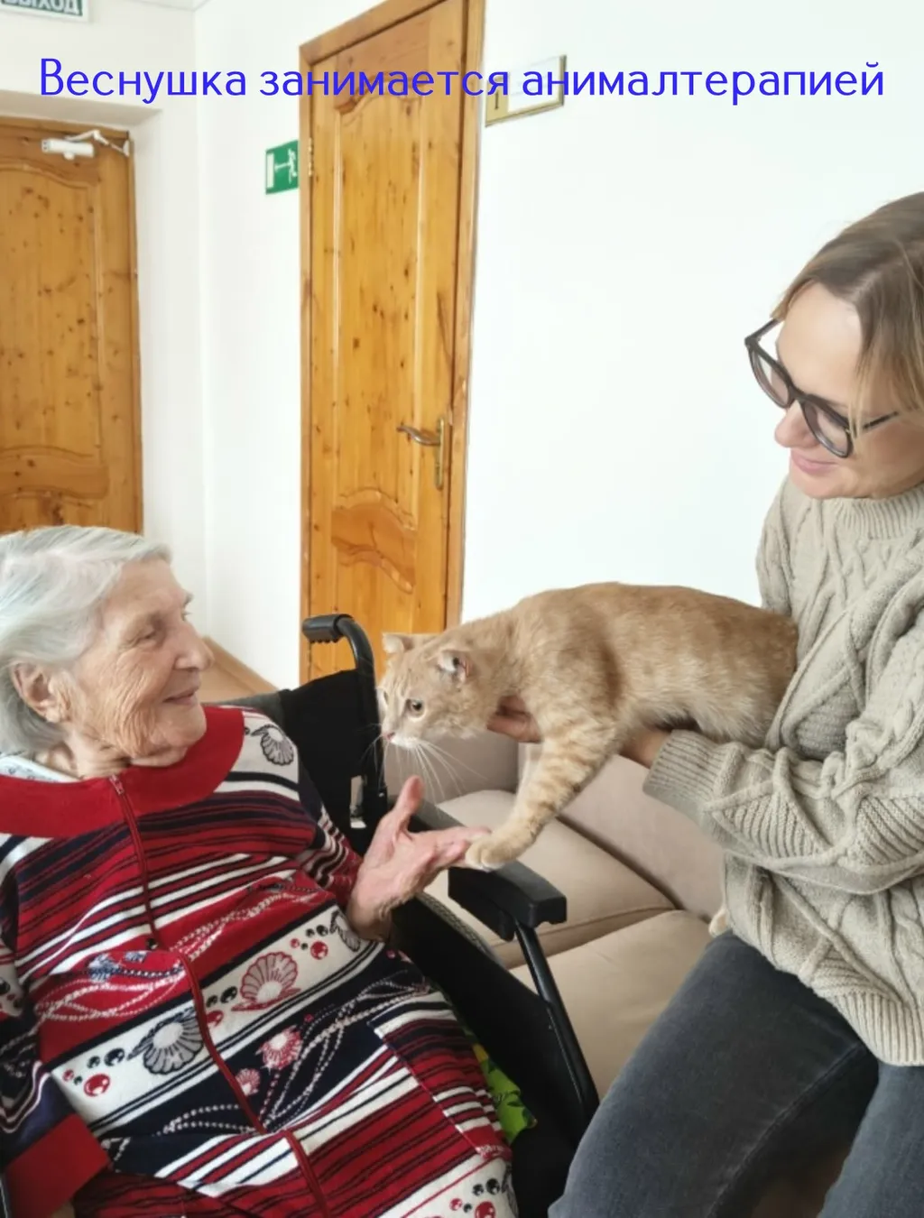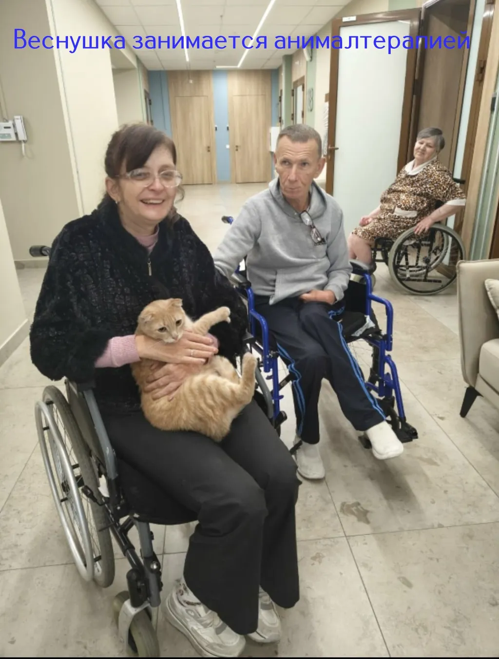 В среду мы возили Веснушку в Введенский геронтологический центр. Там он выполнял работу по анималотерапии у пожилых людей. Сам он был немного в шоке но на руках в итоге всё равно мурчал. Все остались довольны друг-другом! Пожилые люди получили заряд положительных эмоций а мы отличную практику! Ведь Стелла весной ездила туда в сопровождении администрации центра, без нас. А тут нас самих пригласили. Сказали что непременно будут приглашать ещё. В целом меня впечатлил это центр. Его и домом престарелых то язык не поворачивается назвать. Уровень и уход там обалденные! Люди там не выглядят брошенными или грустными! Очень глубокое впечатление на меня произвела с рождения слепая девушка. Она впервые в жизни трогала кота. От переполнявших её эмоций она хлопала в ладоши и очень сильно радовалась. А у меня чуть слёзы не текли. В общем всё прошло хорошо! Обошли все корпуса и со всеми познакомились! Веснушка провёл сеансы анималотерапии по высшему разряду! Впору докторскую давать. Колбасу конечно)