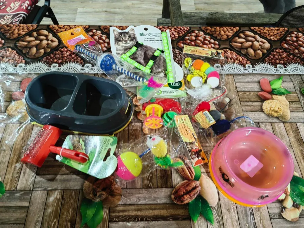 Нам собрали пеленки, вкусняшки, сухие и влажные корма, игрушки и даже небольшой но уютный домик для кошек! Мы очень и очень благодарны всем детям собиравшим эти подарочки для наших пушистиков! Очень благодарны их родителям, которые помогли приобрести и донести всё купленное! Благодарны руководству и всем сотрудникам Дома Творчества «Октябрьский» за то что позволили инициатору всё это организовать и всячески помогать! И отдельно девушке по имени Ксения, которая всё это и организовала с разрешения руководства! Спасибо ВСЕМ ВАМ огромное! Благодаря вам и таким людям как вы, у нас ещё не пропала вера в людскую доброту!