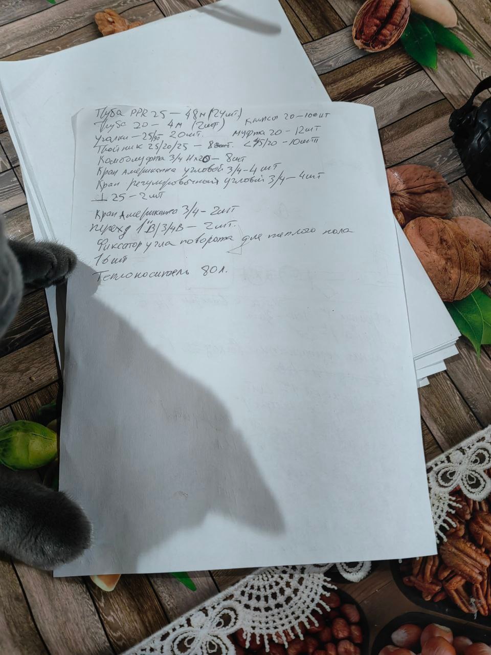 В конце прошлой недели посчитал что ещё не хватает для отопления. Записал и вчера поехал закупать всё. Спасибо за помощь в покупке всего этого доброму другу нашего приюта! Вышло очень много всего и сами бы мы не справились! И хотя покупать ещё надо и дымовые трубы и стабилизатор, дело потихоньку движется.