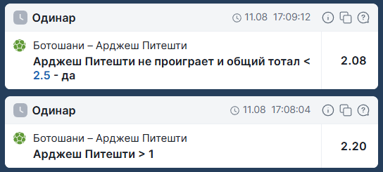 ❗ И как вариант проверить их гол с котировкой «Арджеш ТОТАЛ 1 больше»