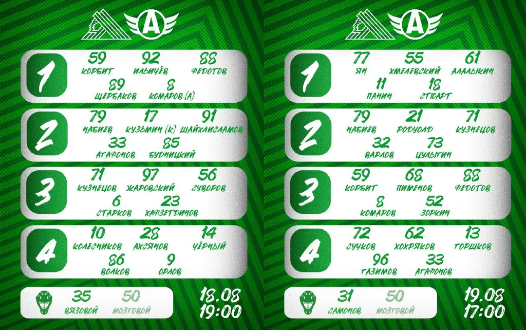 А вот состав на сегодня. Как Козлов обещал, легионеры в составе, Хмель, Стюард, Родуоло. Видим Цулигина, видим Егора, хоть и в четвёртом звене.