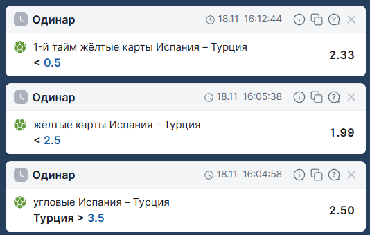 Когда просто футбол, на кураже любая команда может добежать до ворот соперника, а глядя на первую игру, где закончилось 6:0 в пользу Испанцев, но при этом Турки давили флангами вполне напрашиваются стандарты. В той игре кстати Турки забрали углы 8:4 кажется под КФ 6+