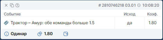 ❗ Как итог, основным вариантом на сегодня предлагаю считать, что обе забьёт 1.5 больше. Контора выкатила КФ 1.80, по-моему это многовато.