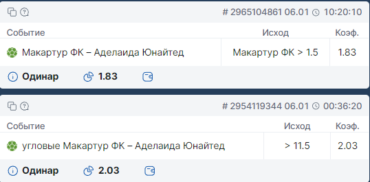 ❗ Опционально я бы проверил ТОТАЛ угловых 11.5, за КФ 2+ и Индивидуальный ТОТАЛ угловых от Аделаиды 6.5 за те-же 2+ … Но это конечно больше ради фана.