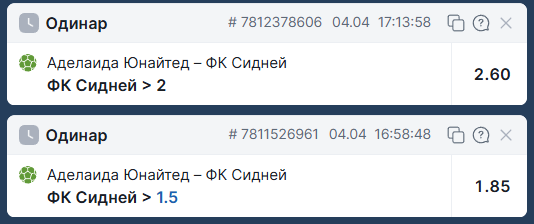 ❗ Как итог, основным вариантом на этот матч предлагаю считать ТОТАЛ 1.5 больше, от Сиднея. КФ небольшой, но хороший.
