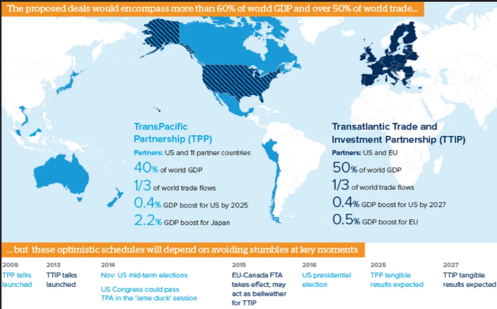 Практически половина мира должны были стать безраздельной вотчиной Транснациональных корпораций под диктатом США. ТНК хотели использовать мощь США в своих целях, зафиксировав экстерриториальность американского правосудия по торговым сделкам, а полученную прибыль оставлять в офшорах.