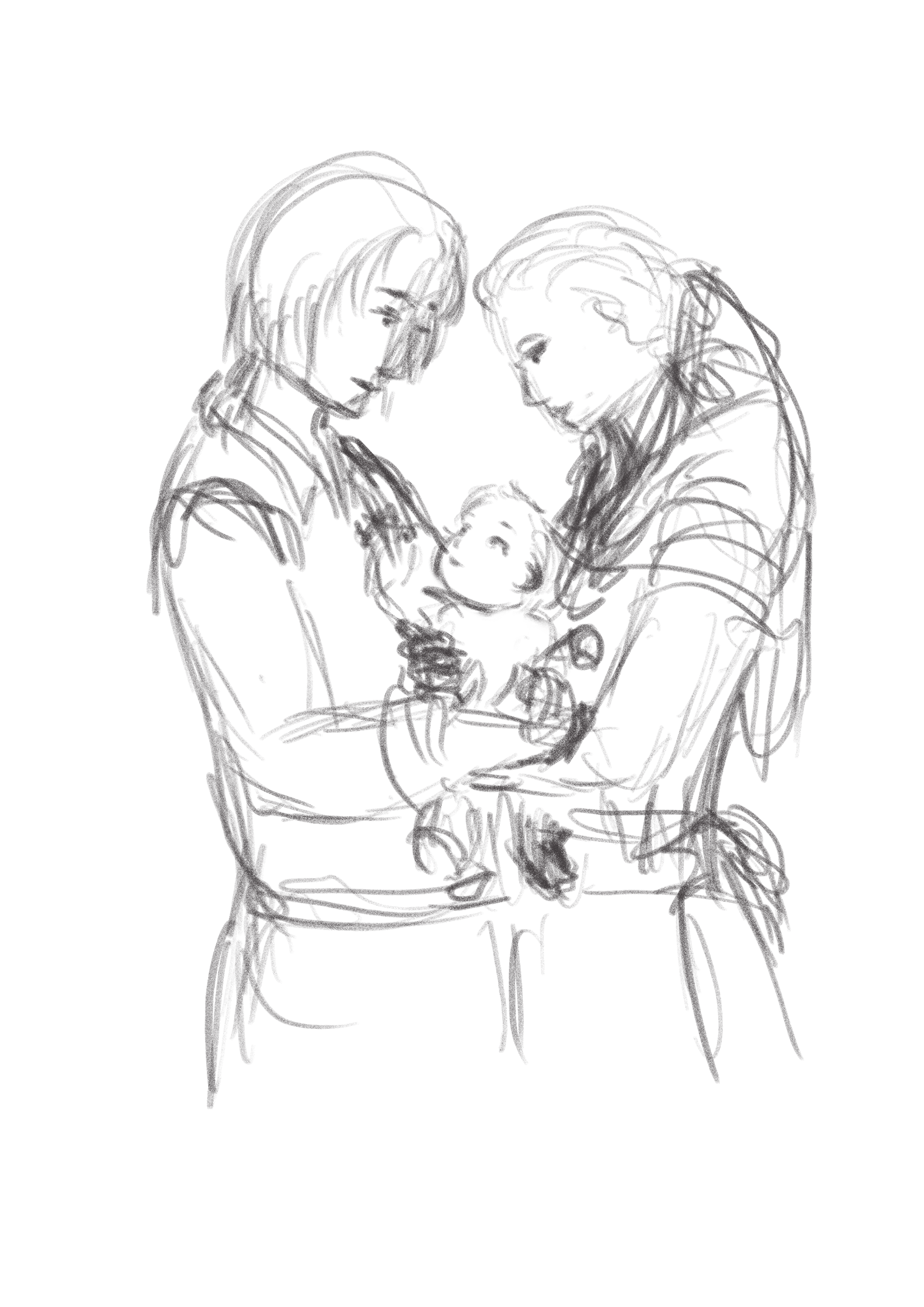 Если что, набросок — это то, куда я хочу потенциально двигаться в иллюстрациях, а второе — это нейросетная реальность, которой мне придётся придерживаться.