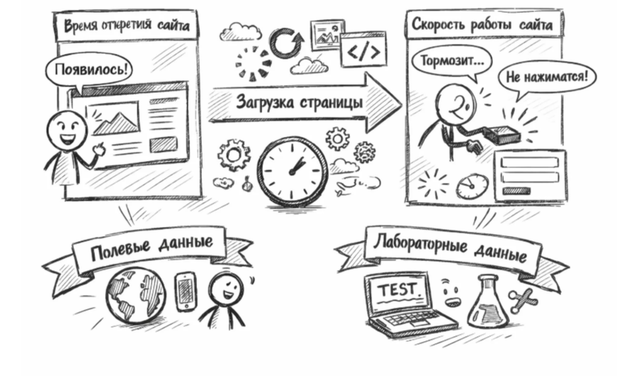 Современные поисковые системы оценивают скорость сайта через пользовательский опыт. Важно, как страницу видят и ощущают люди, а не только то, что показывает тест в идеальных условиях. Поэтому в SEO используют два типа измерений скорости: