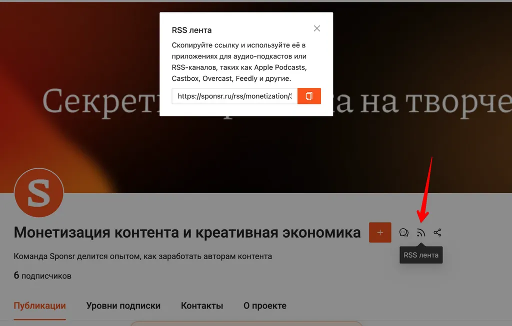 RSS лента. Это позволяет подписчикам слушать аудиоверсию поста с помощью новостных приложений.