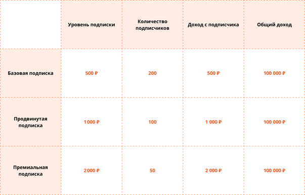 Комбинируя различные уровни подписки и привлекая достаточное количество подписчиков, вы можете достичь желаемого дохода.