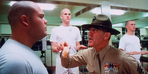 Да-да, советская пропаганда была не так уж и не права, когда писала, что американцы натаскивают своих солдат как убийц. Процесс вполне реалистично и убедительно показан в «Цельнометаллической оболочке» — в том числе потому, что «сержант Хартман», Ли Эрми, был настоящим инструктором по боевой подготовке Корпуса морской пехоты США и отразил в фильме свой реальный опыт ускоренного воспитания убийц.