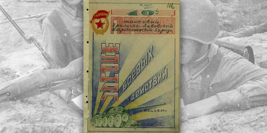 Взять хотя бы роскошный журнал боевых действий уральского добровольческого 10-го гв. танкового корпуса. В момент, когда рисовали эту обложку, в корпус прислали Т-34 с новой длинной 85-мм пушкой.