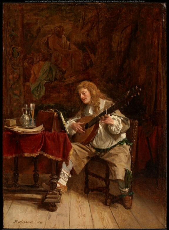 Художник с длинным именем Жан Луи Эрнест Мейссонье работал много, имел признание, но иные эстеты слегка кривились. Кривлёж вызывала «театральность» картин Мейссонье, типа, вот у условных голландцев живая жизнь, а у тебя поза. Какой-то болван даже выдал: «Мейссонье относится к справедливо забытым художникам». На мой же взгляд, это полностью правда, что картины «театрализованные», но эстеты и прогрессенмахеры нафиг идут, потому что все эти мушкетеры, придворные, картежники и курильщики — это мимими, а критики и продвинутые эстеты не мимими вообще. Кстати, при жизни он был очень популярен, картины продавались за кучу франков, и герои Бальзака, которого Мейссонье тоже, кстати, иллюстрировал, отдали бы правую руку за такое вложение капитала (одну из его картин купили за 200 000 и перепродали за 850 000 — Растиньяк с Гобсеком уже себе все ногти съели).