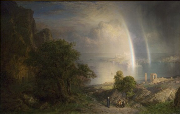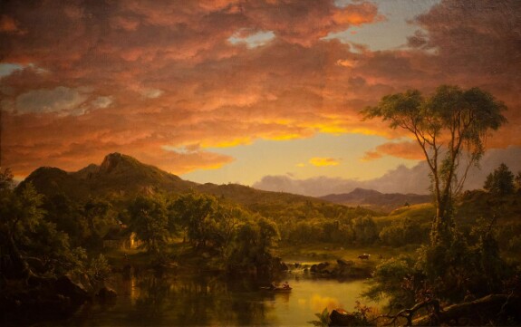 Фредерик Эдвин Черч — американский художник XIX века. Он относился к Школе реки Гудзон — это объединение пейзажистов, которые изображали в основном романтизированную версию природы американского континента. Ну, и не только американского. Жизнь у Черча была, скажем так, очень нескучной. Он много путешествовал и по континентальной Америке, и по островам, ездил в Европу и Африку, стал знаменитым, много выставлялся; личная жизнь была драматичной — первые два ребенка умерли, но потом родились еще четыре. Он, к сожалению, в изрядной степени пережил собственную славу: к концу жизни его популярность пошла на убыль, а работать в последние 20 лет жизни он почти не мог из-за ревматизма. Однако в целом он был и признан, и богат, и вообще, судьба у него яркая и хотя драматичная, но скорее счастливая.