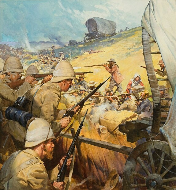 К вечеру, хотя работа была трудна, и люди много ворчали, мы смогли завершить стрелковые траншеи, но остальное закончено не было — удалось выкопать лишь на половину от нужной глубины. Земляные стены внутри хижин также не были закончены. Для каффиров и голландцев готовы глубокие ямы в трех хижинах. Последним, что мы сделали перед отбоем, было распределить по траншеям боеприпасы и пайки. Я также приказал наполнить и распределить все бутыли и любые емкости, в которых можно держать воду, включая пустые жестянки, котелки и каффирские долбленые сосуды, на случай долгого и затяжного боя. Разъяснив всем, как важно соблюдать строжайшую маскировку, чтобы не выдать нашу позицию, если завтра с утра вдруг объявятся буры, я с уверенностью в душе лег спать. Так или иначе, у нас очень хорошая позиция, и пусть ее оборудование не завершено, это можно будет наутро исправить, если только у нас будет время.