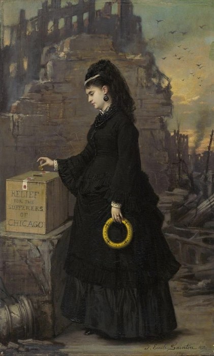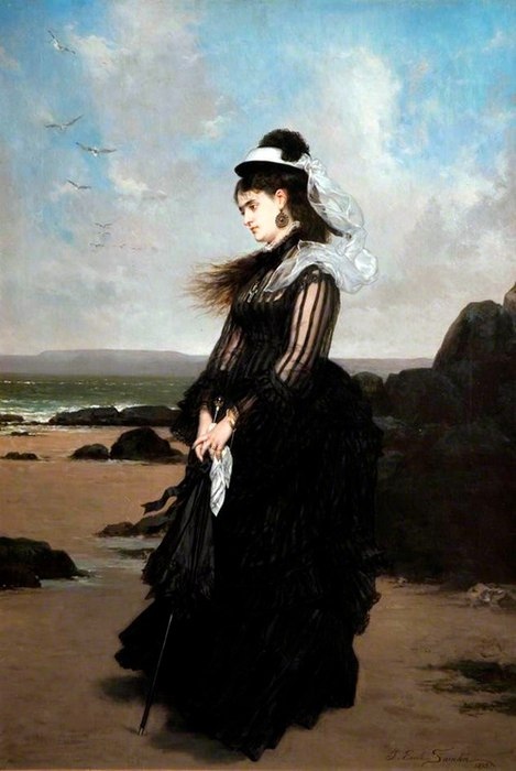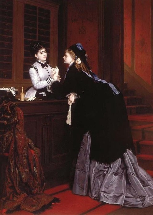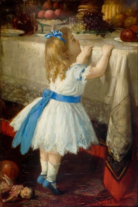 Jules-Émile Saintin был французский живописец. Писал женщин, детей и редко, но метко мужыков. Помер старым кавалером Почетного Легиона, выставлялся успешно, резких поворотов в жизни вроде как не имел. Он, похоже, был не то чтоб прямо шибко плодовит, но то, что есть — хорошо весьма.