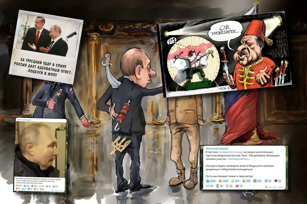 Отправка Эрдоганом вна Украину интернированных азовцев дала новый импульс едкому юмору относительно ножей в спине Путина.