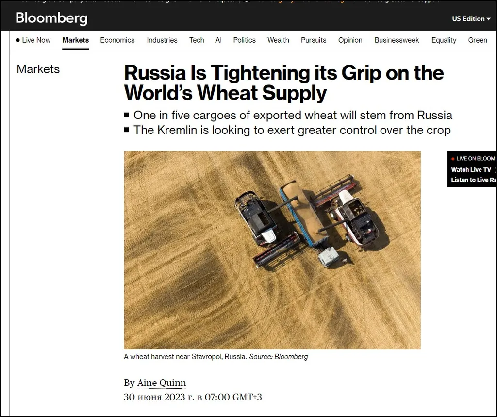 В результате зерновой сделки каждая пятая партия экспортной пшеницы в мире будет поставляться из России. Влияние Москвы на рынке возросло, в то время как доля Украины с начала конфликта сократилась вдвое.