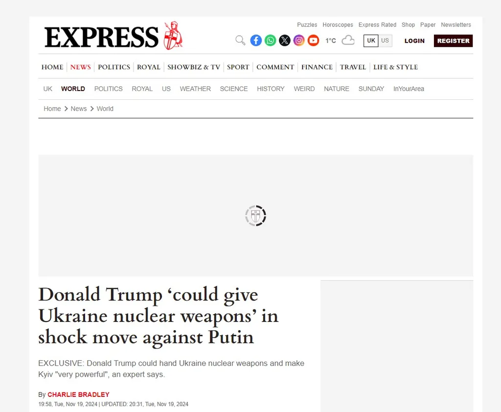 Британская газета сообщает, что Трамп намеревается тайно передать Украине ядерное оружие.