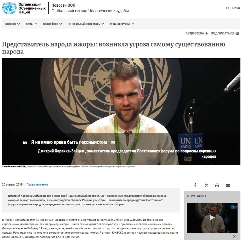 «В ноябре президент Эстонии Тоомас-Хендрик Ильвес выступил в рамках недели общих дебатов генассамблеи ООН с заявлением о необходимости защищать права коренных народов, проживающих в районе порта Усть-Луга. Сегодня на годовой конференции Эстонского института по правам человека представитель ижорцев Дмитрий Харрака-Зайцев призвал к защите региона от индустриализации.