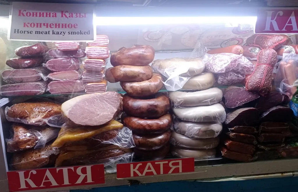 11. Всё мясное здесь очень качественное и практически без шприцованной воды — совсем не так, как у нас в мегаполисах. Хит ассортимента — это конская колбаса «Казы». Офигенная штука!