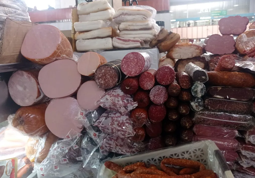 12. Много колбас, и тоже практически все без выделения воды, сухие. Есть и сало, немного, но свинина здесь непопулярна.