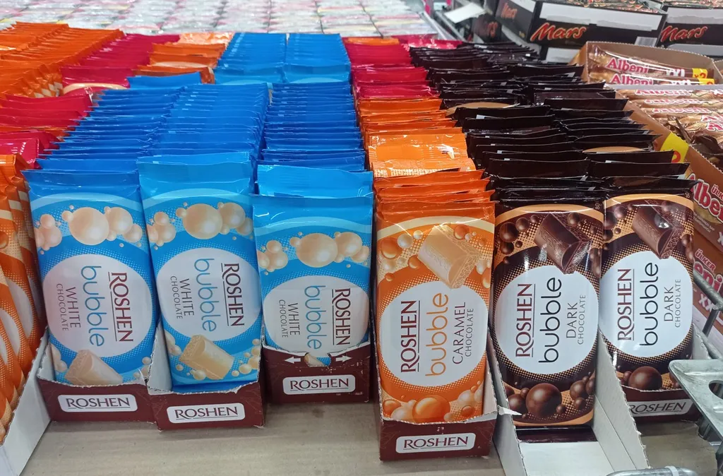 22. В шоколадном отделе я обнаружил враждебную вылазку украинского «Рошена», который принадлежит шоколадному олигарху и экс-президенту Петру Порошенко.