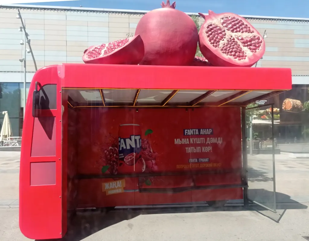 25. Очень колоритная остановка возле ТЦ «Достык» с объемными 3D-гранатами. Красная, как революционная сознательность :)