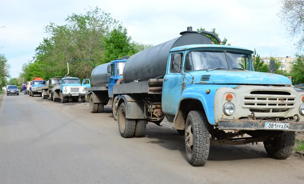 13. Затем был кусок с ремонтом мемориальной зоны и стояла длинная вереница старых советских ЗИЛов и ГАЗов, которые тут до сих пор работают. Андрей даже разговорился с одним казахом, который очень обрадовался, узнав, что мы из Питера. «А я под Ленинградом служил!»