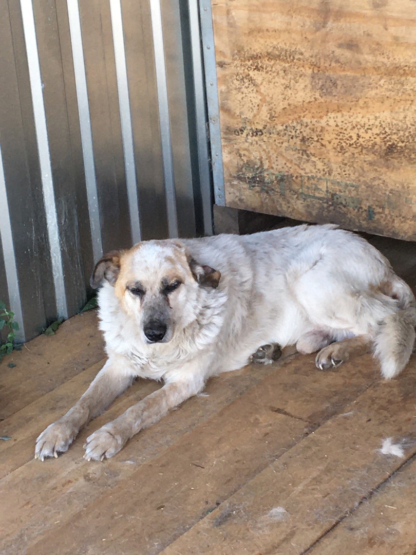 Старичок Коленька, жил на базе, был молодым боевым… но старость не радость, более молодые собаки немного потрепали Коленьку , сейчас у него хорошо…