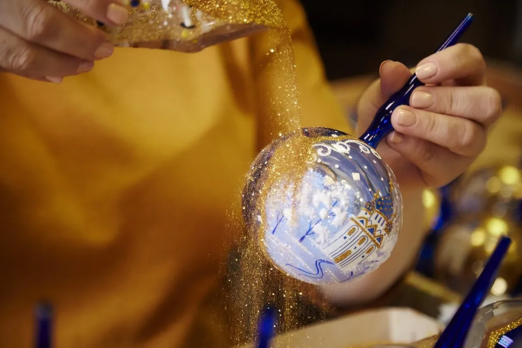 Мое внимание было приковано к работе художников, расписывающих елочные игрушки. Художник художника, как рыбак рыбака, видит издалека.🤓👩🎨