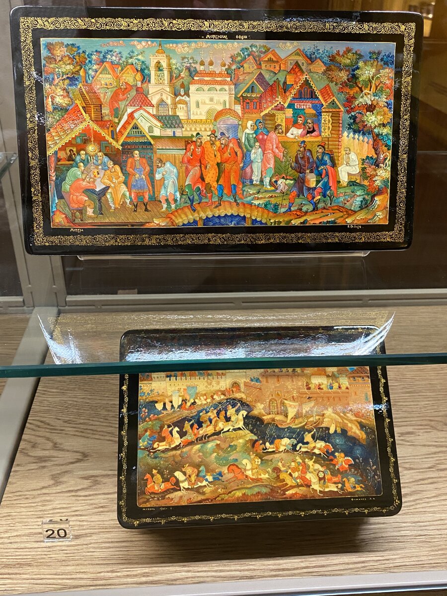 Восхищает многообразие мастеров, чьи лаковые миниатюр экспонируются, а также сюжетов и эпох. Наверняка, собрать такую красоту в одном месте было задачей не из легких. Браво!