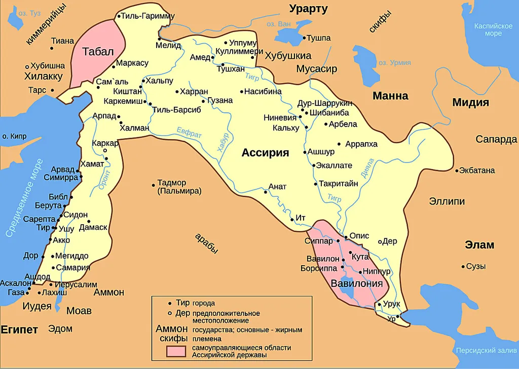 К 700-м годам до н.э Ассирийская империя пребывала на пике мощи. Ее новой столицей стала специально построенная для той цели Ниневия (в честь богини плодородия Нины). А владыка Ассирии Ашшурбанипал («преемник Ашшура»)к 620-м гг до н. э. достиг такой власти, что запрягал покоренных царей в свою колесницу.