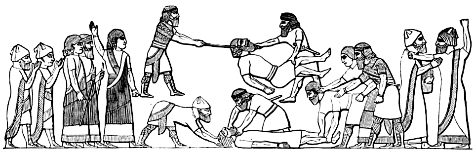 · Ассирийцы под корень вырезали любые сопротивлявшиеся города, весело рассаживали на колья любых осмелившихся выйти против них с оружием в руках противников. Мужчин, женщин, стариков и детей.
