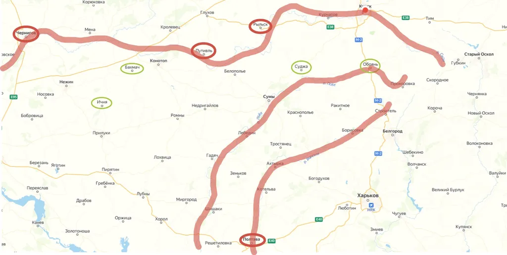 Предлагаю вниманию читателей еще одну карту, на которой выделены три «оборонительные линии» в виде рек Десна-Сейм, Псел и Ворскла.