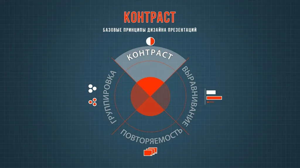 Контраст делает слайд живым: он отделяет значимое от второстепенного и ведёт взгляд зрителя по нужной траектории. Правильное использование этого принципа превращает презентацию в понятный и убедительный инструмент коммуникации.