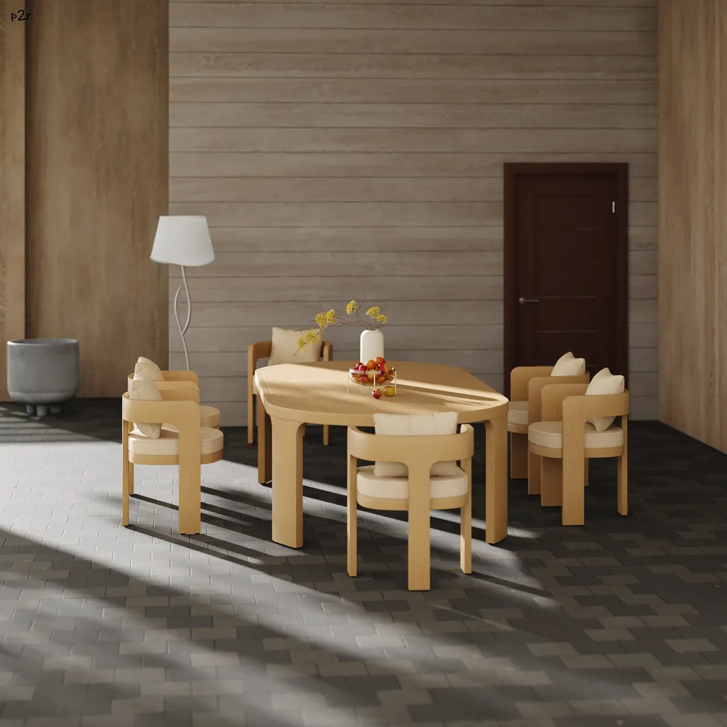 Каждый элемент сцены проработан с высокой степенью детализации: от обеденного стола и стульев до декоративных аксессуаров, посуды и растений. Это позволяет заказчику оценить не только общую концепцию, но и конкретные предметы мебели в контексте реального пространства.