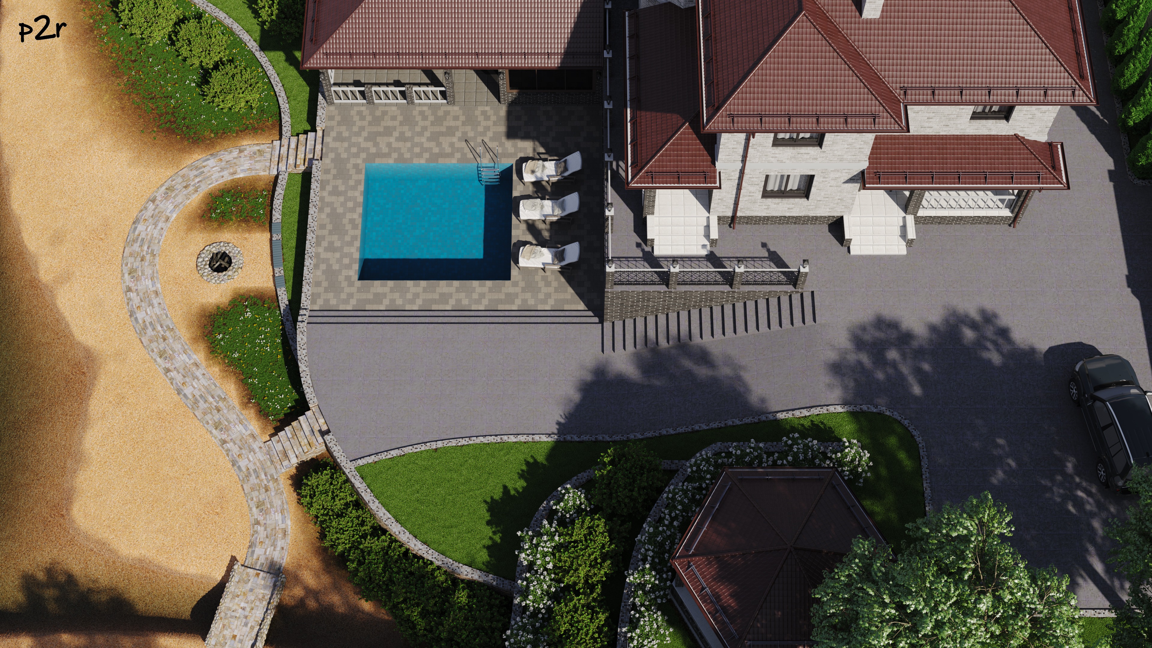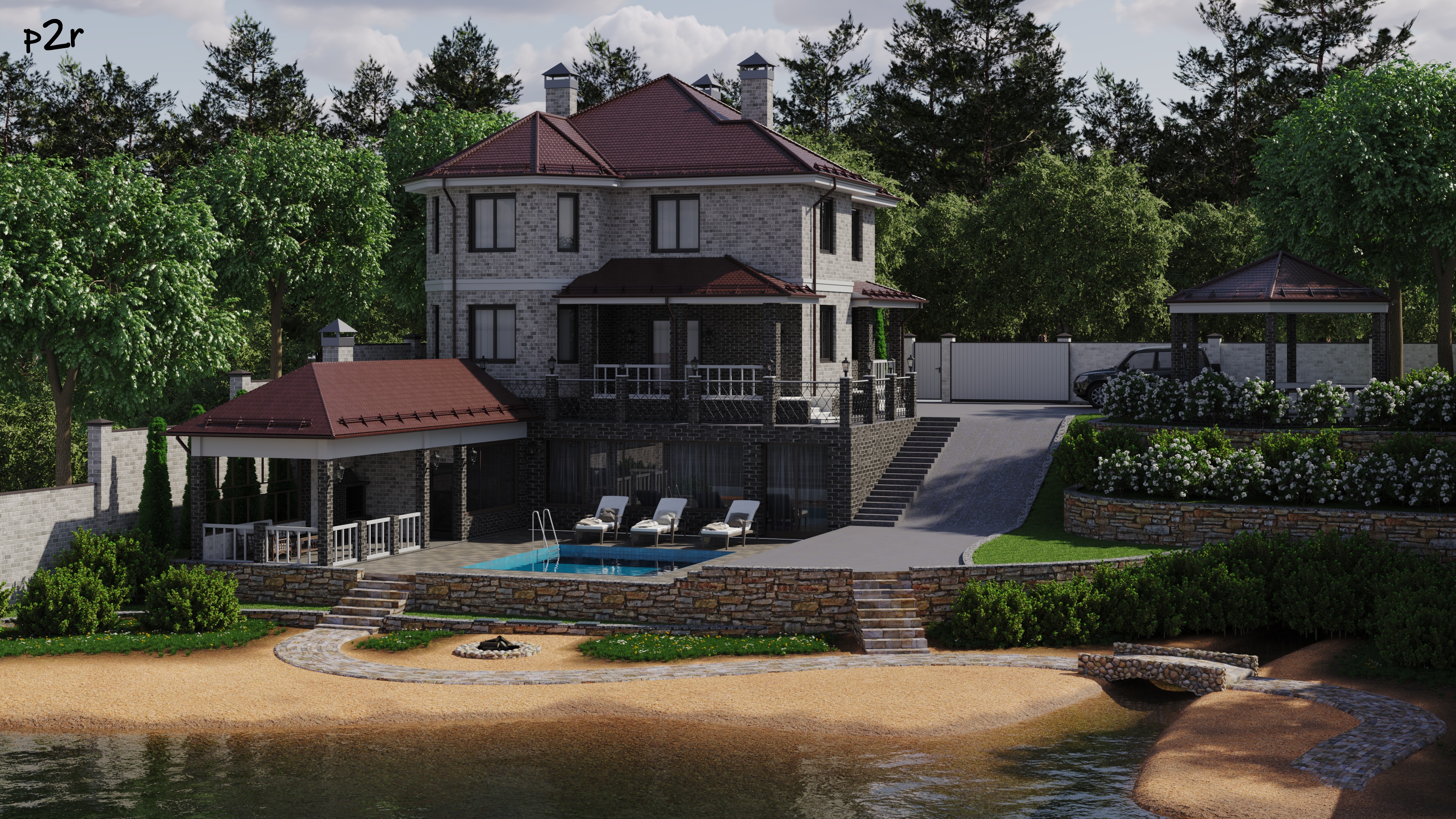 Сформировать образ элитного загородного дома, где каждая архитектурная деталь и элемент благоустройства работают на создание атмосферы тепла, приватности и эстетического совершенства. Объект должен органично вписываться в рельеф берегового участка, сохраняя при этом индивидуальность и узнаваемость.