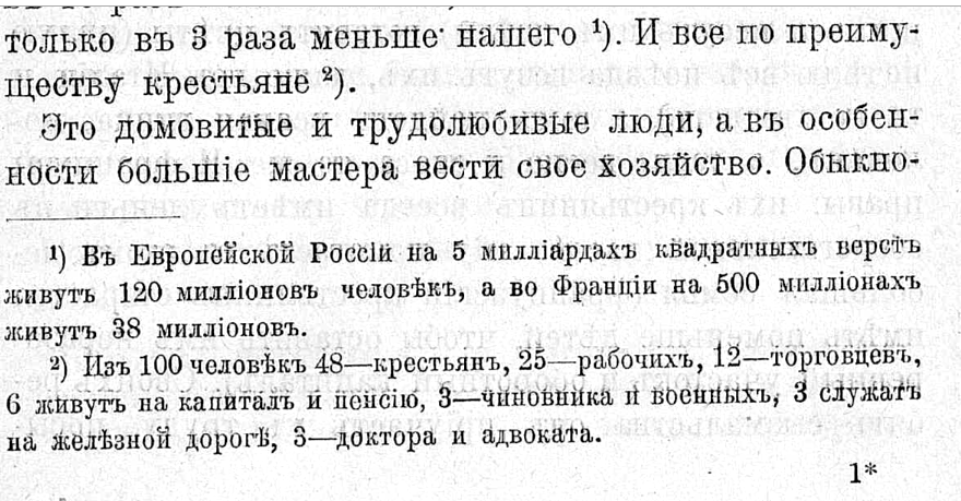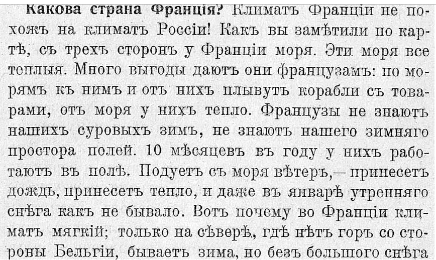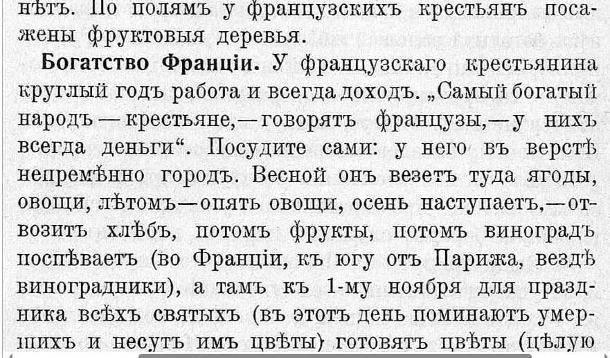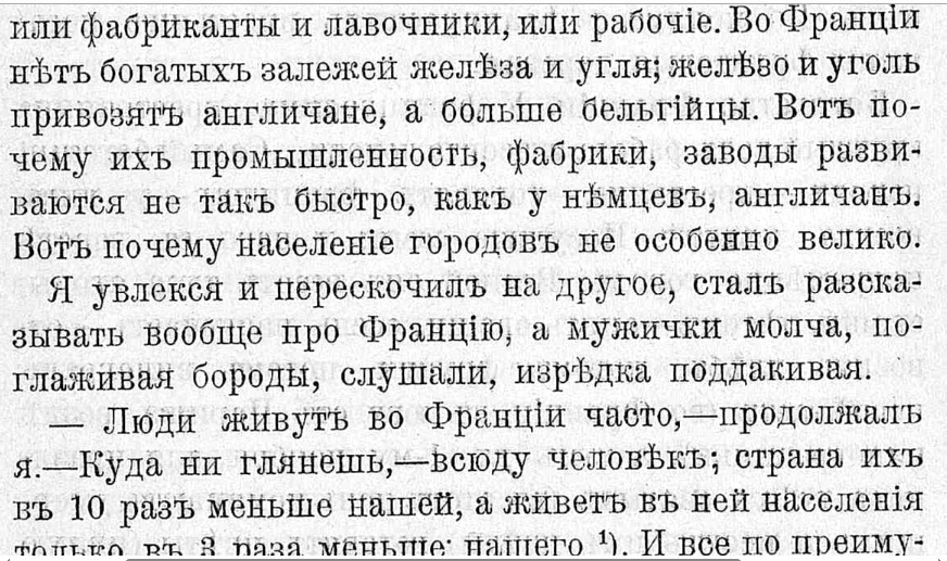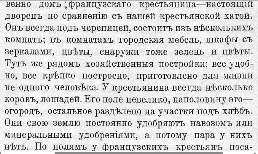 Нам сейчас будет важен не исторический контекст даже, а сам подход к разъяснительной работе с населением, которому предстояло объяснить, с какой такой радости (ну, помимо высочайшего соизволения) мужчины призывного возраста должны идти воевать в союзе с французами, коих били с переменным успехом последние лет 200 их отцы, деды и прадеды. Одной из форм такой профилактической пропаганды были дешевые и написанные в расчете на интеллект простого человека книжки, распространяемые, в том числе, и бесплатно. Расчет был на то, что немногочисленные грамотеи, зацепившись за отдельные важные для них БЫТОВЫЕ детали, расскажут своим неграмотным землякам, какая замечательная страна Франция, как здорово с ней дружить и какой, соответственно, мудрый у них царь-батюшка, раз выбрал такого союзника взамен основательно надоевших простому люду немцев, коих в России было в процентном отношении примерно как нынешних ценных специалистов, но отнюдь не среди дворников и курьеров.