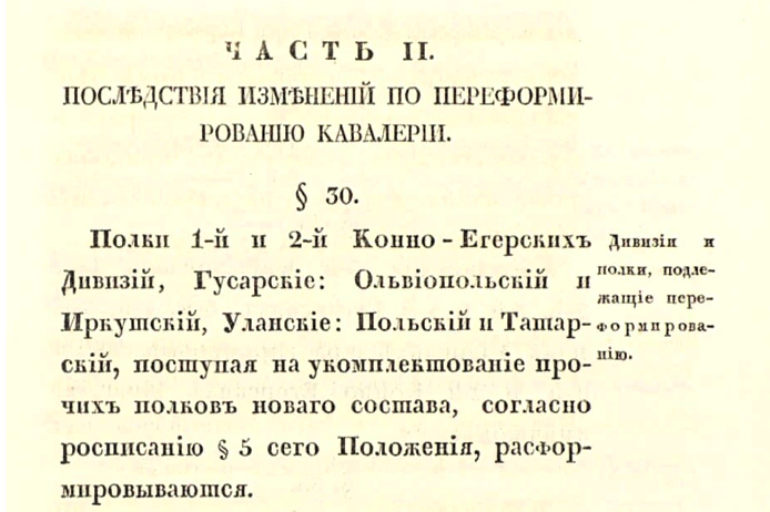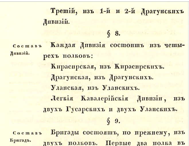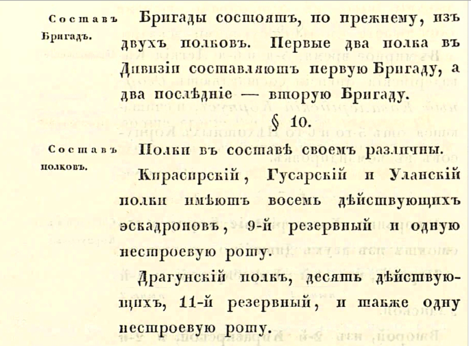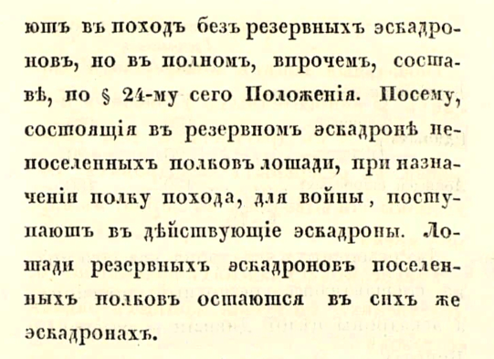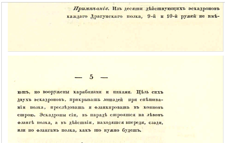 9-й и 10-й эскадроны драгунских полков ружей не имеют… Цель сих двух эскадронов прикрывать лошадей при спешивании полка, преследовать и фланкировать в конном строю.